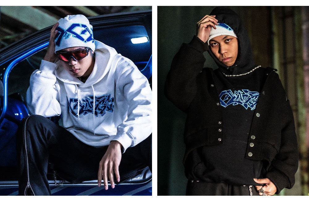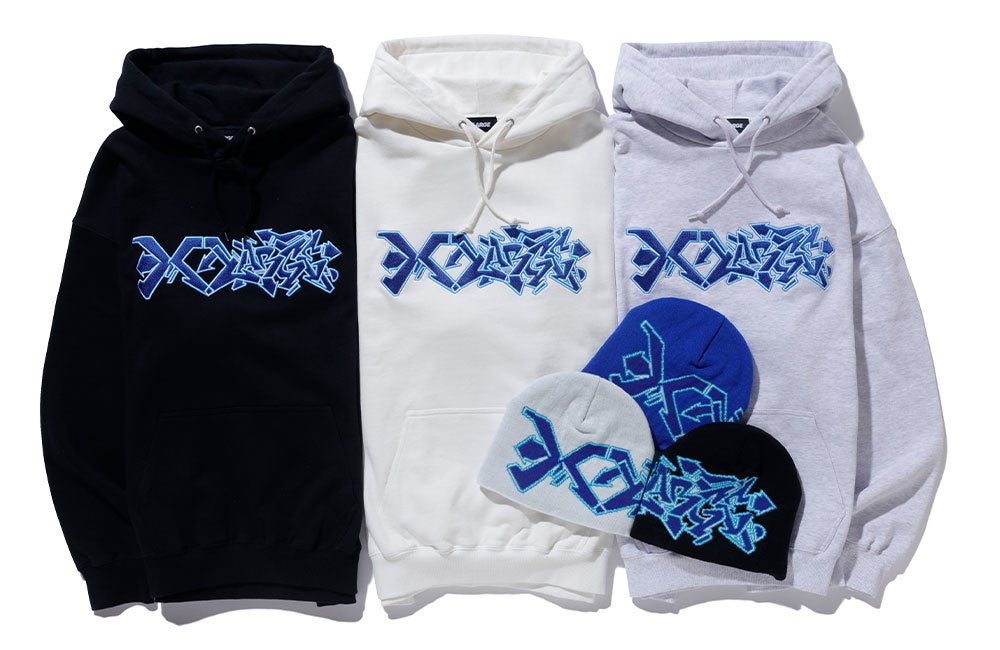 「XLARGE」のグラフィティを刺繡で施したフードスウェットと、ジャガードで表現したビーニーの2アイテムを展開いたします。