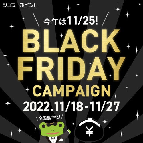「Shufoo!」では、2022年11月18日から11月27日まで、「ブラックフライデーキャンペーン」を実施します。今回、ブラックフライデーの本来の由来「黒字になる」に立ち返り、コロナや物価上昇で落ち込んだ日本を元気し、生活者も店舗もみんなが黒字化できるよう「目指せ!全国黒字化」をテーマに掲げました。全国で使えるギフト券・電子マネーに加え、近くのスーパーやドラッグストアで使える商品券などが当たります。ブラックフライデーで購入予定の上位にもランクインした日常の食料品や日用品などの購入にご活用ください!