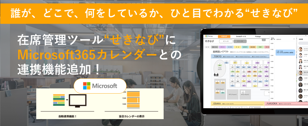 リクエストにお応えし、在席管理ツール「せきなび」に、Microsoft365カレンダーとの連携機能を追加しました。
