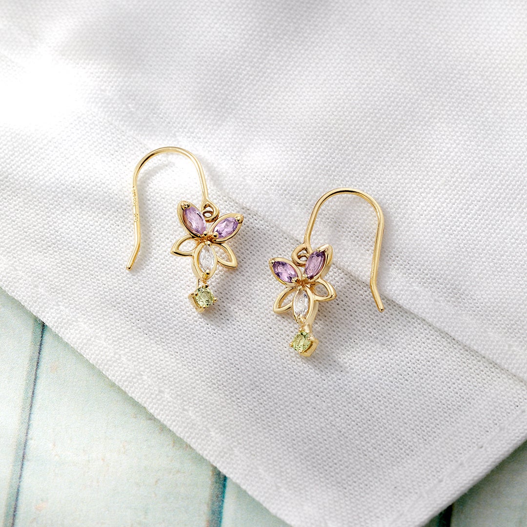 K10YG Pierced Earrings / Amethyst/ White Topaz / Peridot ¥37,400