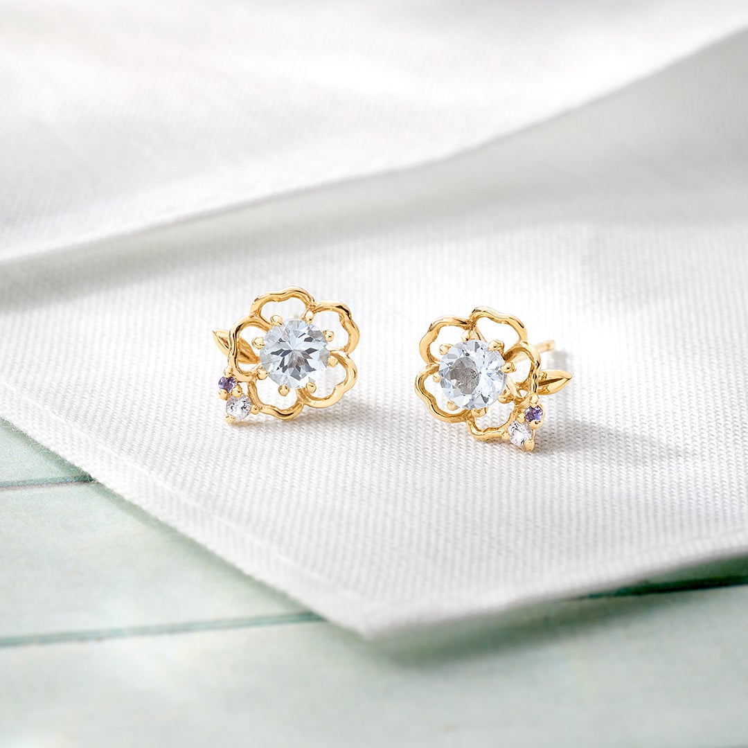 庭園いっぱいに広がる爽やかな青色の花、ネモフィラを表現したシリーズも。丸みを帯びた花の輪郭を象るイエローゴールドの地金に、アクアマリンの優しいブルーの輝きを添えることで、ネモフィラが一体に広がる圧巻の景色と一つ一つの花のかわいらしさを表現しました。細かいディテールにこだわった華やかさを感じさせるデザインは、ドレスアップしたい日のコーディネートにもぴったり。新たな季節の始まりに、春の爽やかな景色を思わせるジュエリーをワードローブに加えてみては。