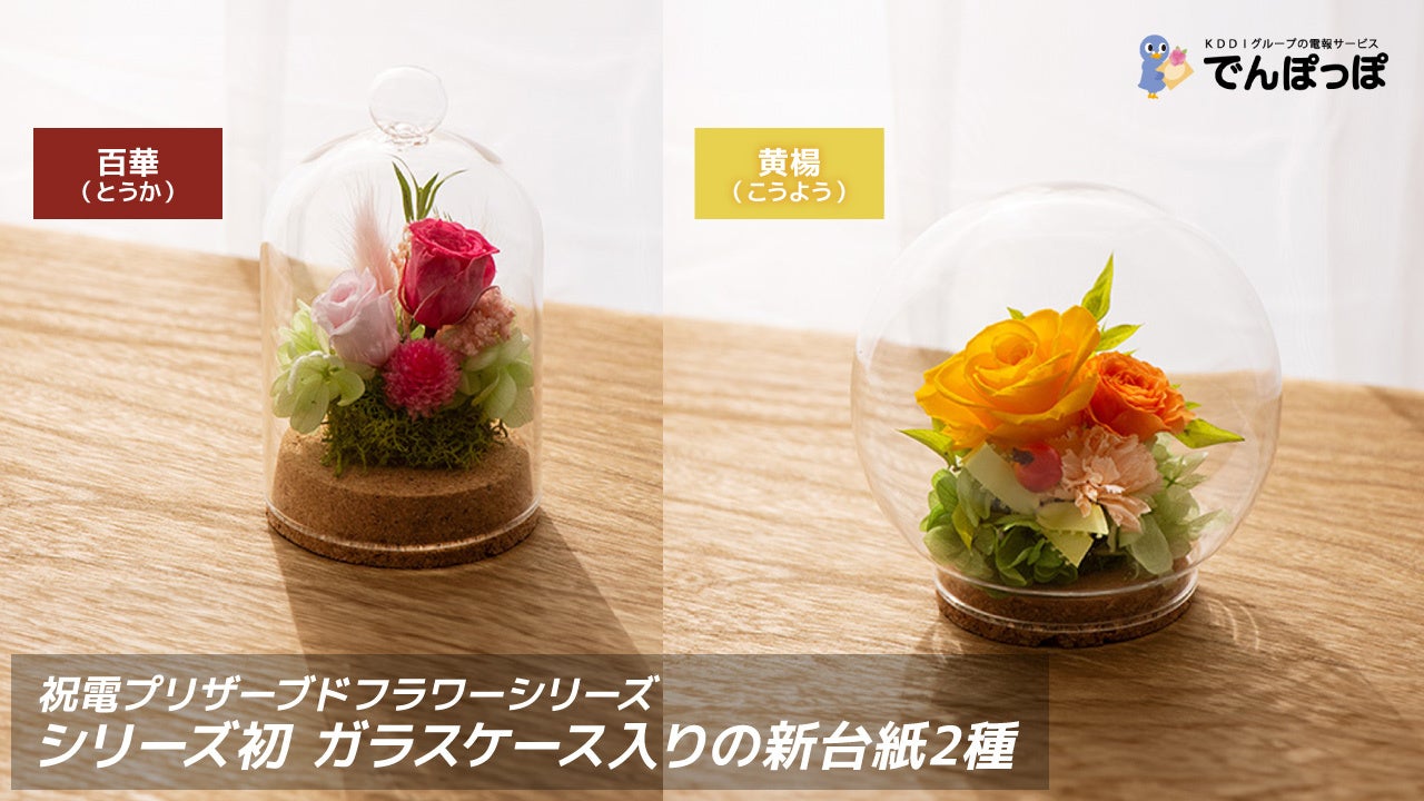 でんぽっぽ、祝電プリザーブドフラワーシリーズに新台紙2種販売開始 ~シリーズ初 ガラスケース入りで色鮮やかな祝福の気持ちを永く伝えるギフト電報