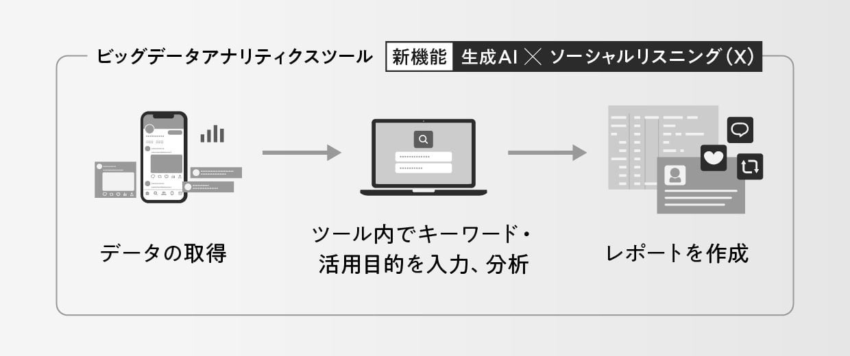 生成AIを活用したビッグデータアナリティクスツールにX(旧 Twitter)の反響を調査・レポーティングするソーシャルリスニング機能を追加