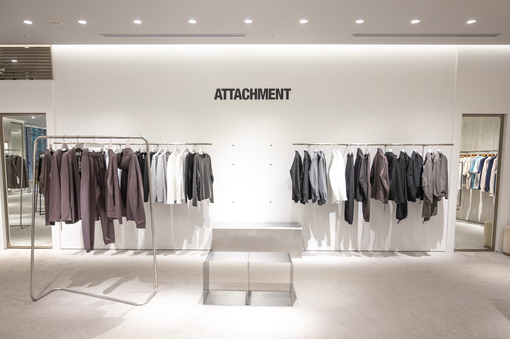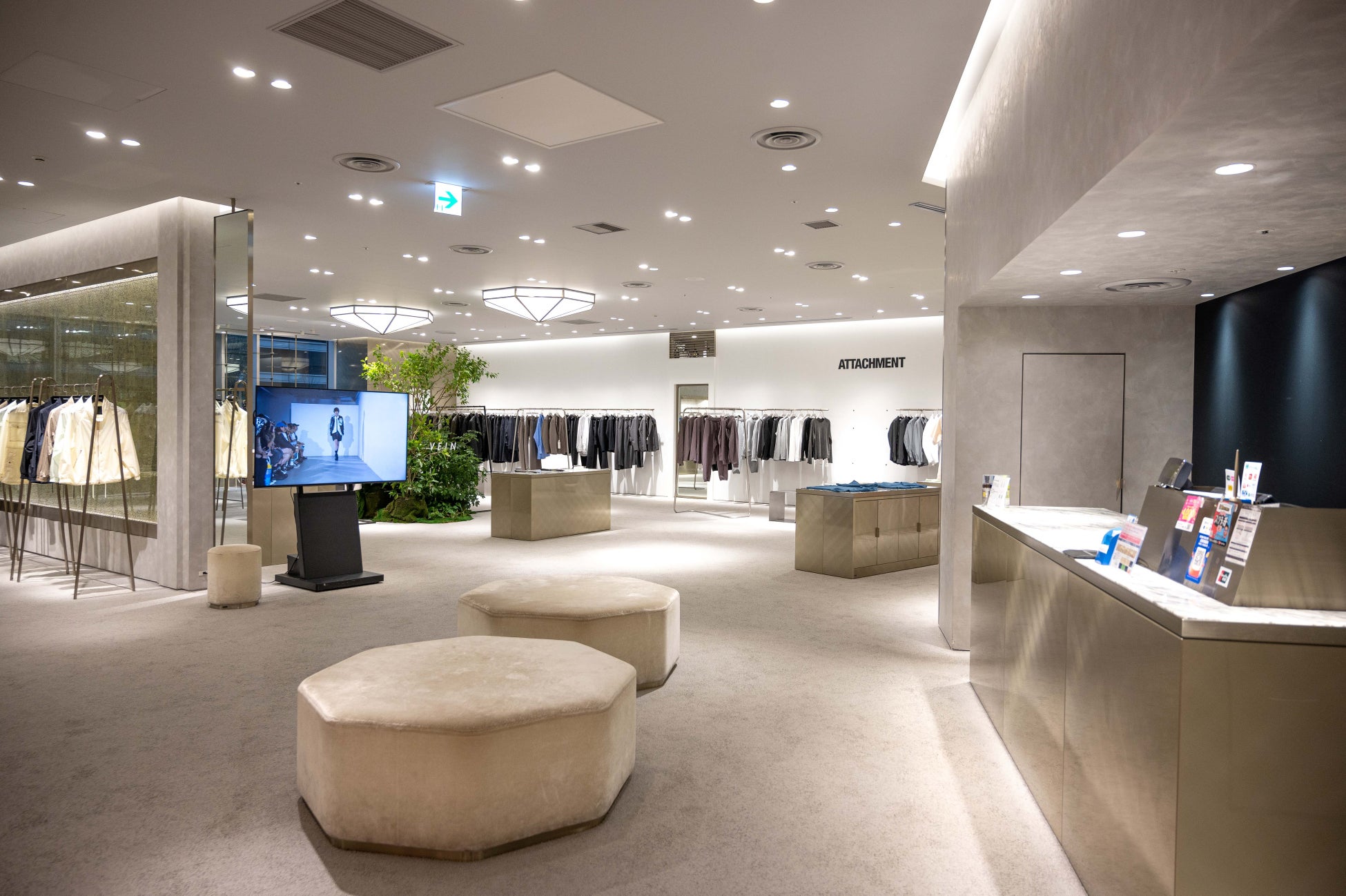 TATRAS直営店をショップインショップとして持つセレクトショップ【TATRAS CONCEPT STORE 日比谷店/タトラス コンセプトストア 日比谷店】では、この度新たにKOKI ENOMOTOがクリエイティブ・ディレクターを務めるATTACHMENT、VEINに加え、【Down to Earth】をブランドコンセプトに”FASHION ・JOURNEY ・SOCIAL ACTIVITIES”の3つの軸に活動するSEAGREENの3ブランドのSHOP IN SHOPを同時オープンいたします。