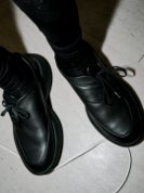 ローファーライクなルックスながらホールド感のあるレースアップタイプ。スムースレザーとヌバックレザー2素材展開。