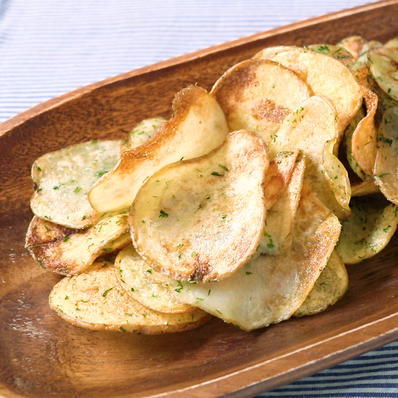 スライサーで薄くカットしたじゃがいもを油で揚げて、自家製ポテトチップスはいかがですか?