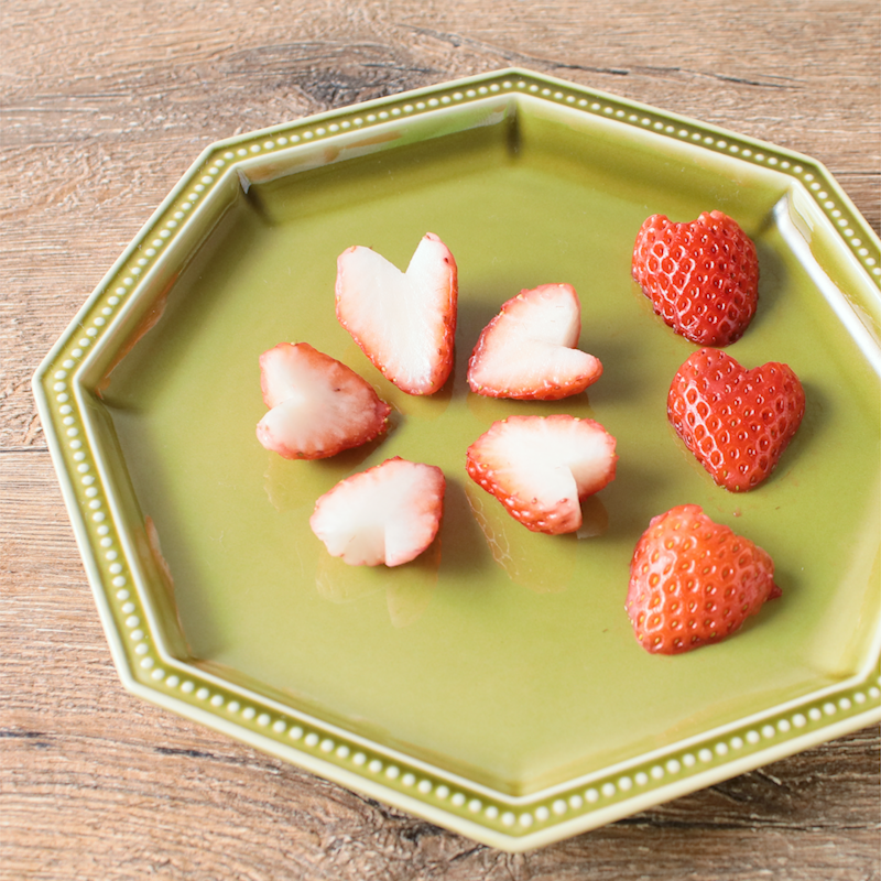 いちごのヘタをⅤ字型にカットすると、ハート型になります。