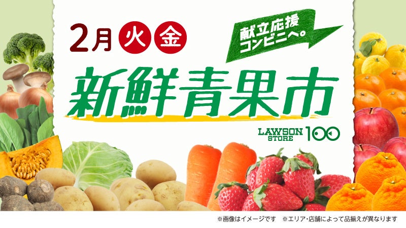 ローソンストア100は献立応援コンビニヘ。2月も毎週火・金曜日に「新鮮青果市」を開催!