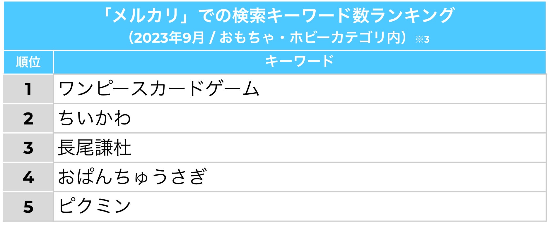 ※3: メルカリ自社調べ。2023年9月1日~9月30日の期間、「メルカリ」における検索数が多かったキーワードをランキング化した結果