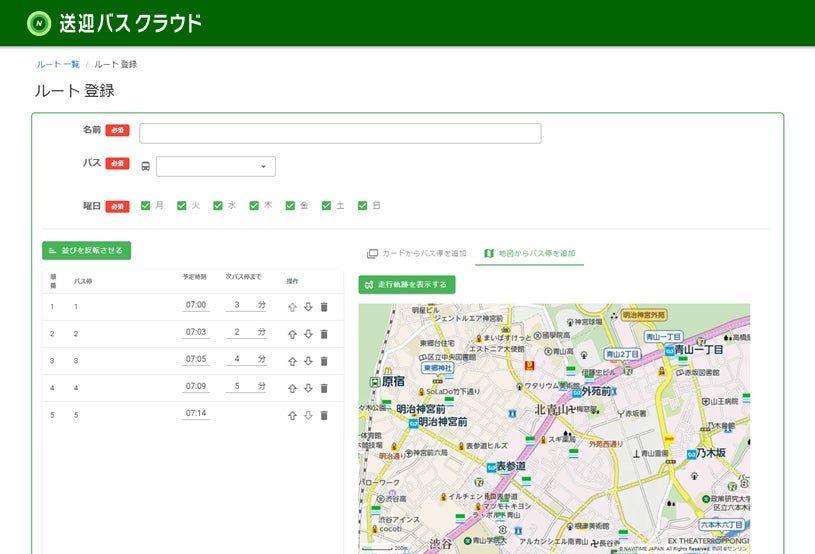 ①送迎バスの運行ルート登録(管理者画面)