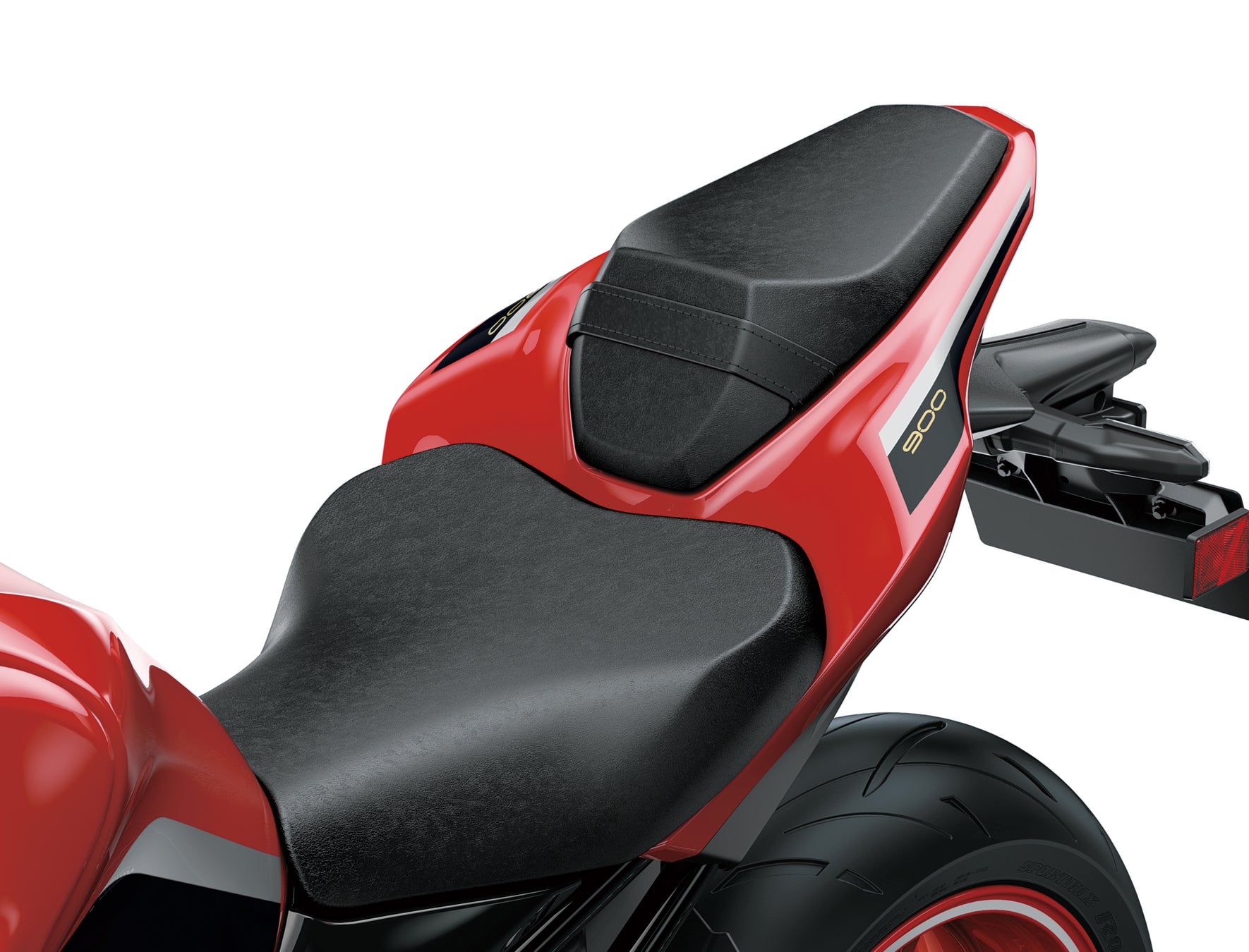 ストリートでのファンライディングと強烈なビジュアルインパクトをZ1から継承する新世代のZ、Z900。そのアニバーサリーモデルには、アグレッシブなボディワークをさらに強調する「ファイアクラッカーレッド」が採用されています。ファイアクラッカーレッドは、空冷Zの頂点モデルとして君臨したZ1100GP(1981)をはじめ、Z400GP(1982)などにも採用された、1980年代のZを代表するカラー。当時人気を集めたこの「鮮烈な赤」を、今回、Z900 50th Anniversaryのために特別に調合し再現。50年に渡り究極のエキサイトメントを追求し続けてきたZの血統がいま、スーパーネイキッドZを鮮やかに彩ります。