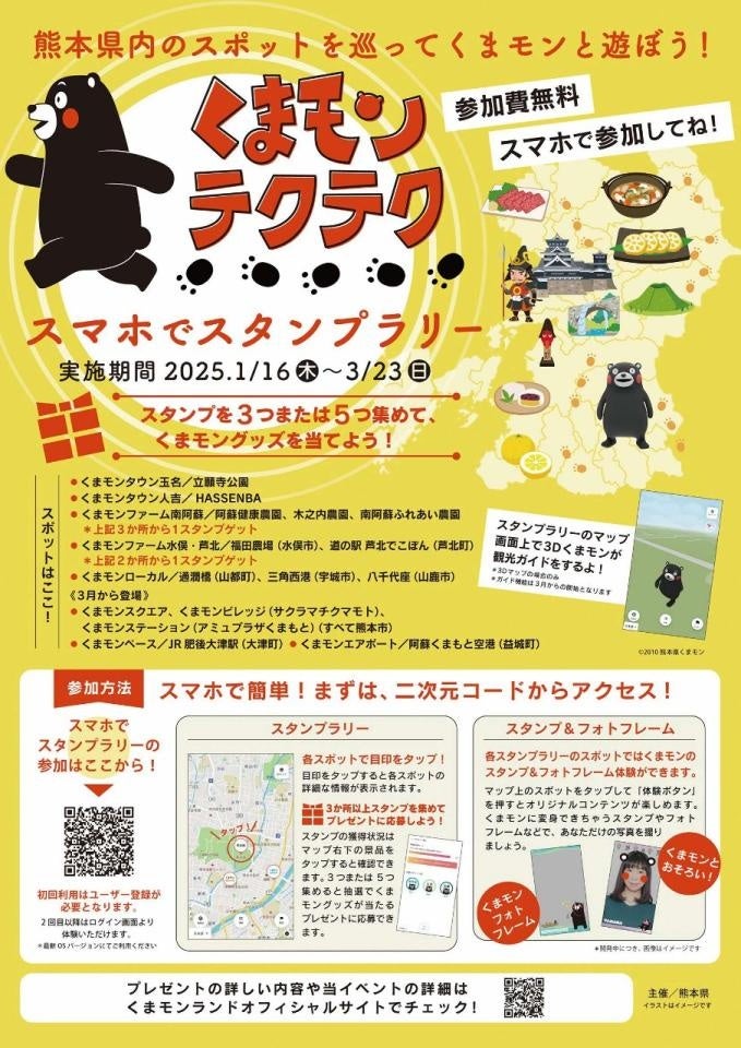スポットで獲得できるスタンプを集めると、抽選でくまモングッズが当たるキャンペーンも実施!