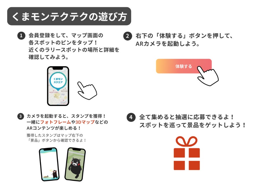 各スポットでは「くまモンのフォトフレーム」やくまモンになれる「くまモン顔認証AR」の体験ができます。