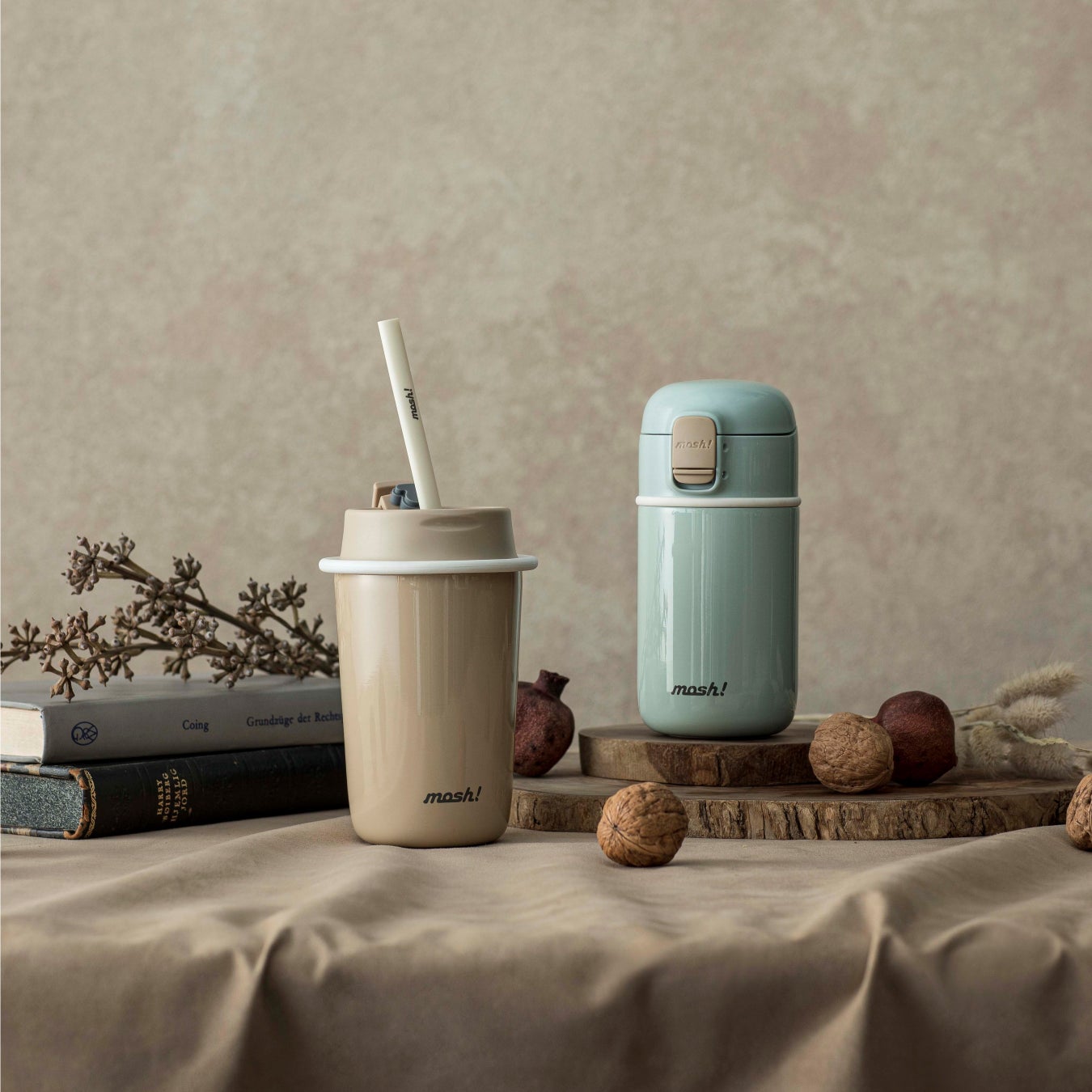 ストローで飲む飲み方と、直接飲める飲み口で2通りの飲み方ができます。また止水構造のため、持ち運びもできます。