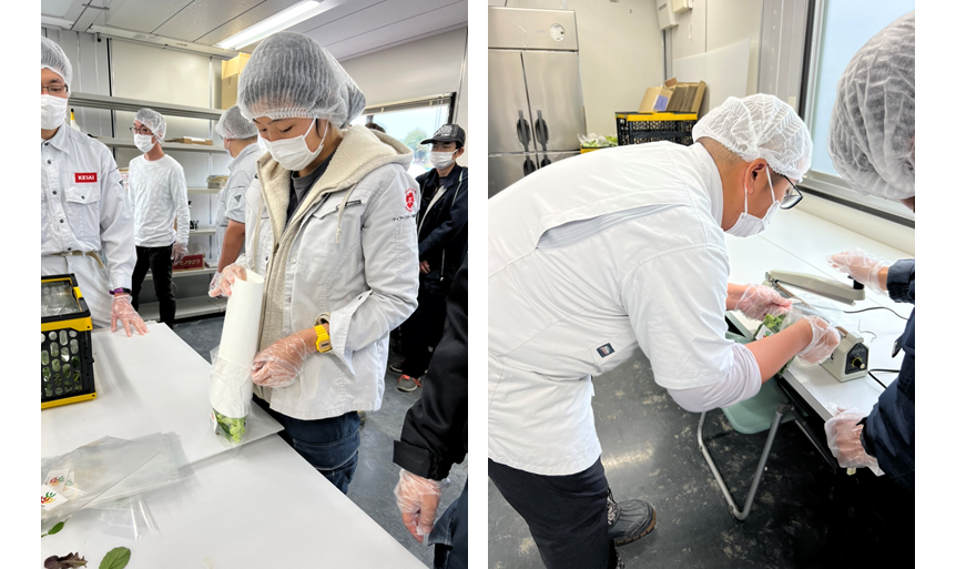 今回初出荷されたベビーリーフは、ひとつひとつケイアイファームの従業員が手作業で袋詰めを行いました。無農薬で安心安全なベビーリーフを従業員に届けケイアイファームの認知向上、従業員の健康促進を図るとともに、すべての従業員の働きがいに繋がる、多様な人材が活躍できる職場環境の実現を目指します。