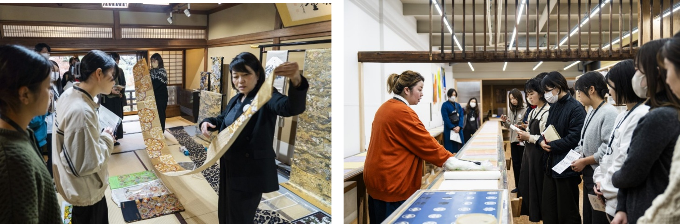 2023年度から続く過去5回の開催では延べ約60名が参加し、岡文織物(西陣織)、南條工房(鳴物神仏具)、匠弘堂(宮大工)、山元染工場(型友禅)、千本銘木商会(銘木屋)の工房を訪れ、工芸品が出来上がる工程や職人たちによる熟練の技を間近で見学しました。