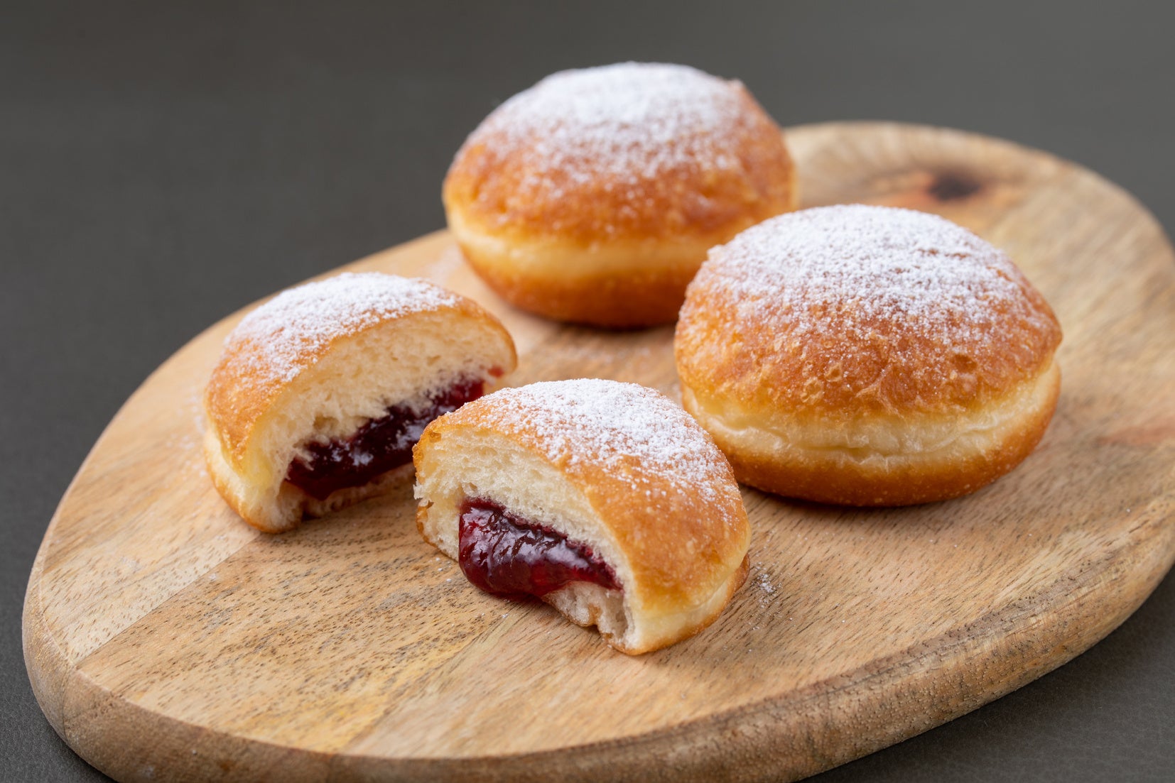 ふわふわな食感が特長の揚げパン「ベルリーナー」は、ドイツで大晦日に好んで食べられる伝統的なブレッドです。ドイツ出身の総料理長監修のもと本場の味わいを再現いたします。いちごとラズベリーをあわせた自家製のベリージャムの甘酸っぱさと、ふわっとした食感をお楽しみください。