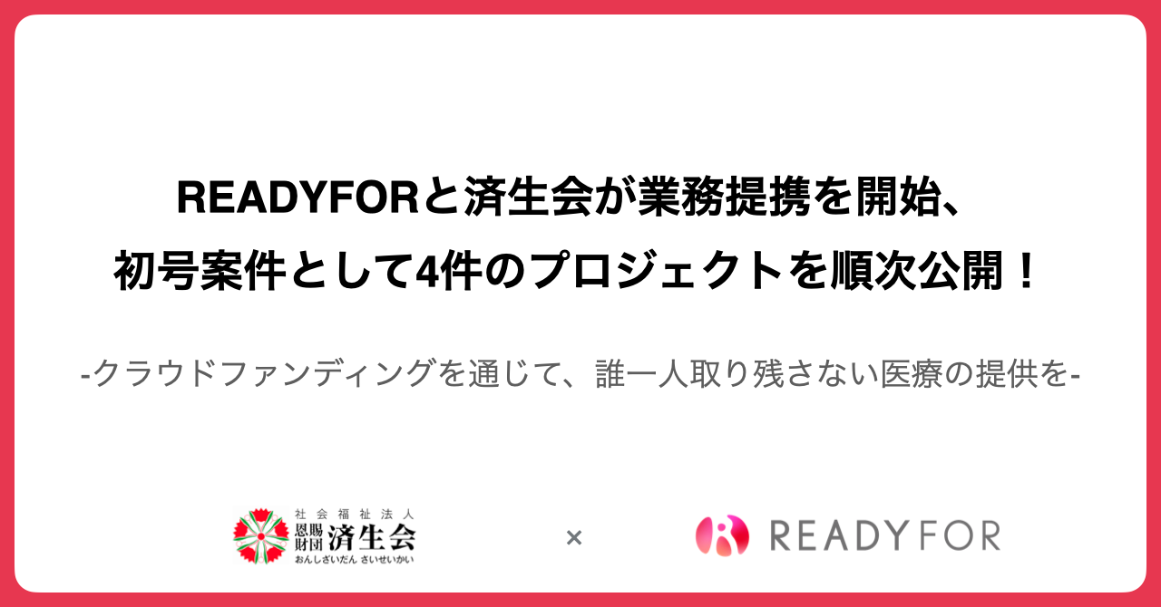 READYFORと済生会が業務提携を開始、初号案件として4件のプロジェクトを順次公開!