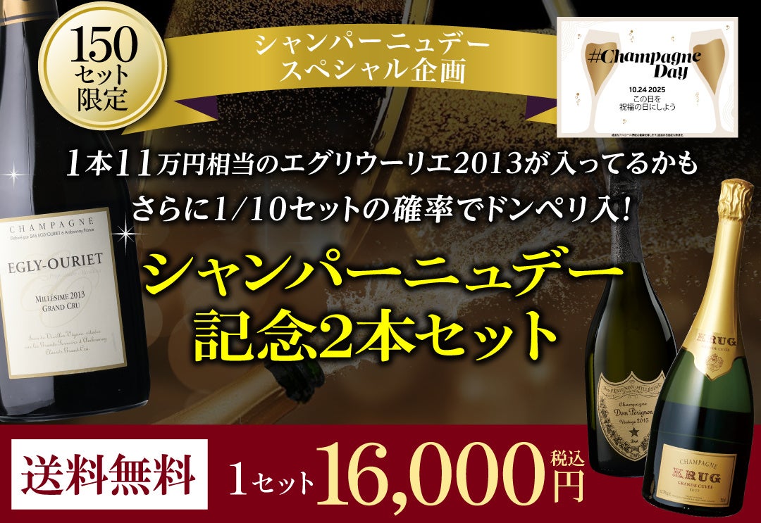 シャンパンハウス楽天市場店は、世界中の愛好家がシャンパーニュを祝う「シャンパーニュデー」を記念し、2025年10月22日(水)18時から10月27日(月)23時59分までの期間限定で「2025シャンパーニュデーSALE」を開催いたします。 本セールでは、大賞は11万円相当「エグリ・ウーリエ 2013」の記念セットのほか、名門「ボランジェ」が入った豪華5本セット、希少シャンパンが最大60%OFFになる1万円均一特価など、この期間だけの特別な企画を多数ご用意し、お客様の日頃のご愛顧に感謝を伝えます。
