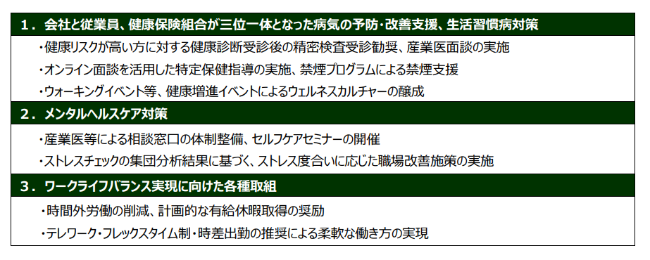今年度は当社の健康経営課題や取り組みを体系的に整理した上で、より高度かつ複合的に健康増進施策を推進しました。
