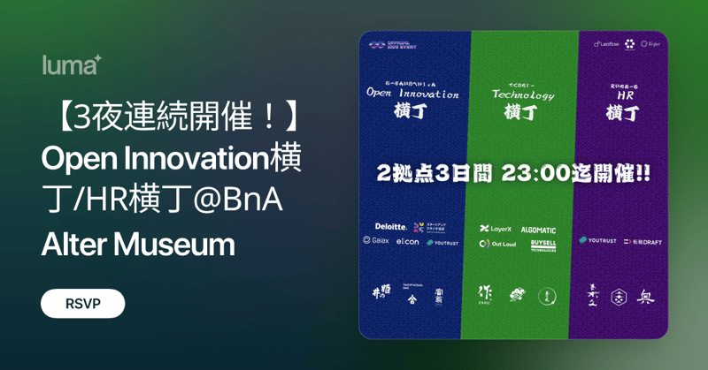 起業家輩出を目指す超濃密プログラム「IVS Sandbox」及びIVS 公認サイドイベント「Open Innovation横丁/HR横丁@BnA Alter Museum」に参画