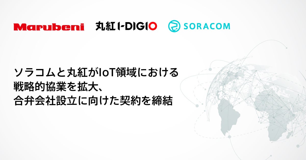 株式会社ソラコム(本社:東京都港区、代表取締役社長 CEO 玉川憲)と、丸紅株式会社(本社:東京都千代田区、社長 大本晶之)は、IoT領域における戦略的協業の一環として、丸紅グループの丸紅I-DIGIOホールディングス株式会社(本社:東京都文京区、代表取締役社長 佐藤由浩)とソラコムの合弁会社を設立することで合意したことをお知らせします。