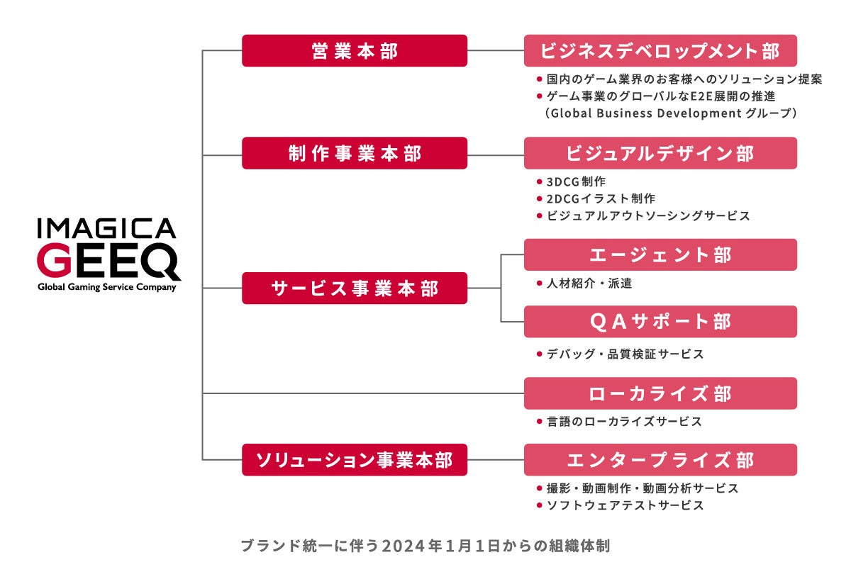 ブランドを統一することでIMAGICA GEEQとしてさらなる一体感を持って、ゲーム業界をはじめとした皆様に、これまで以上に質の高いサービスをグローバルに提供し、「Global Gaming Service Company」を目指してまいります。