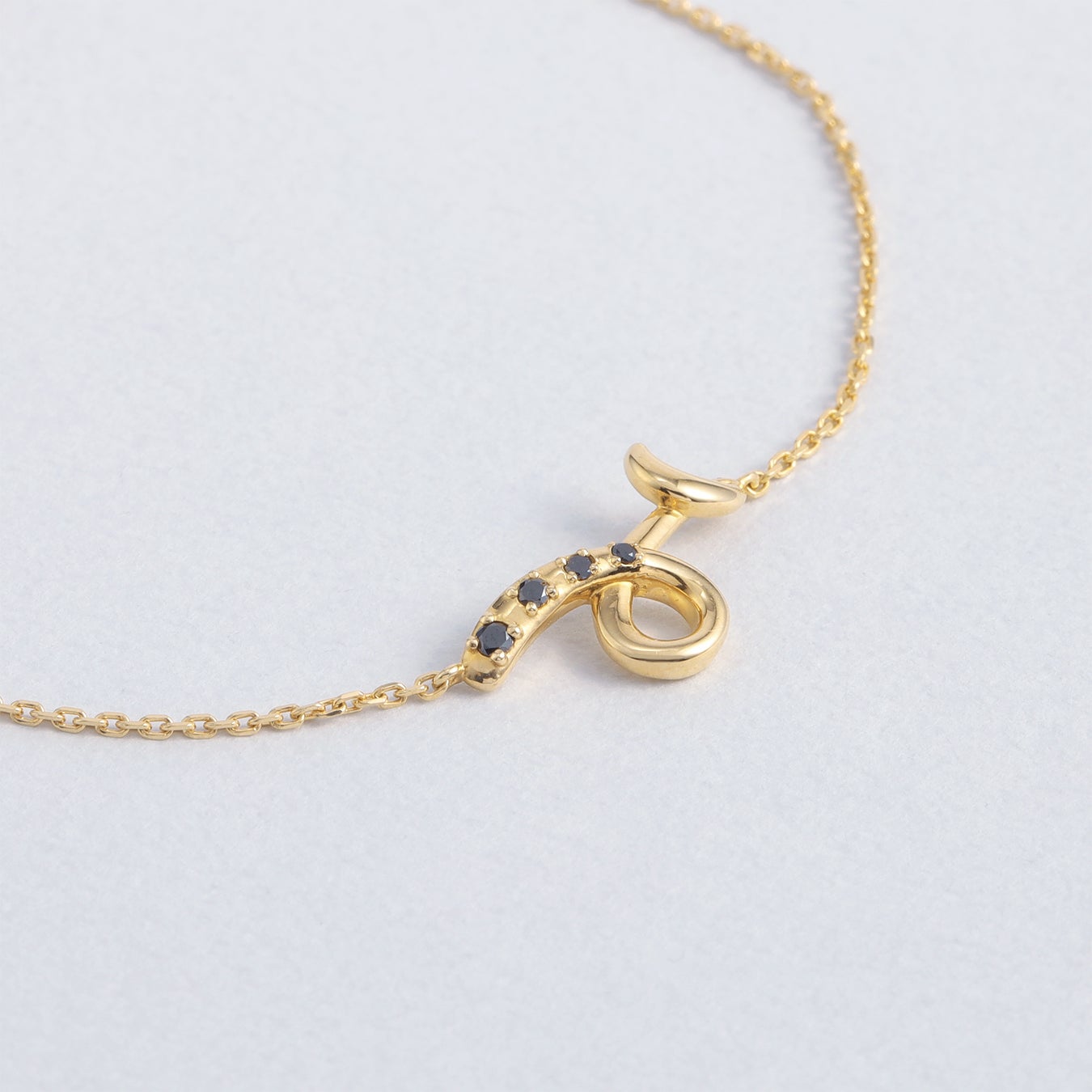 蠍座の星座記号をアレンジしたモチーフが、お守りのように手元に寄り添うブレスレット。