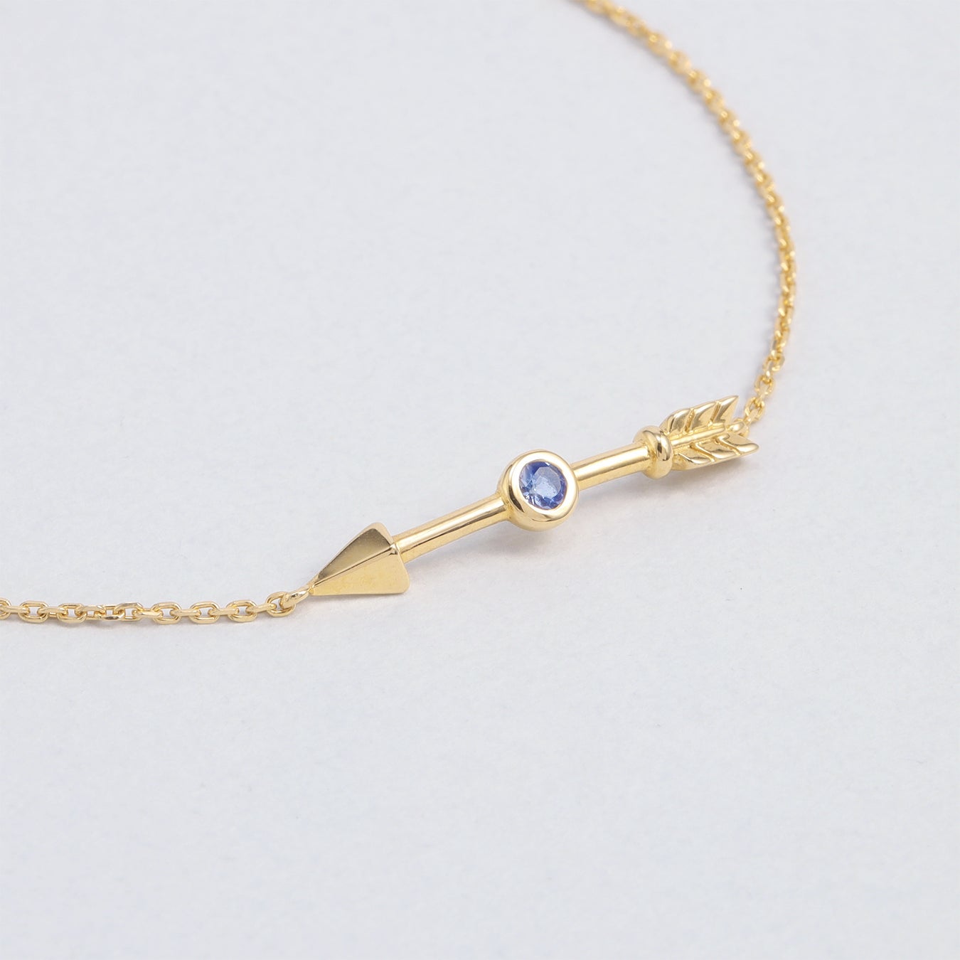 射手座の星座記号をアレンジしたモチーフが、お守りのように手元に寄り添うブレスレット。