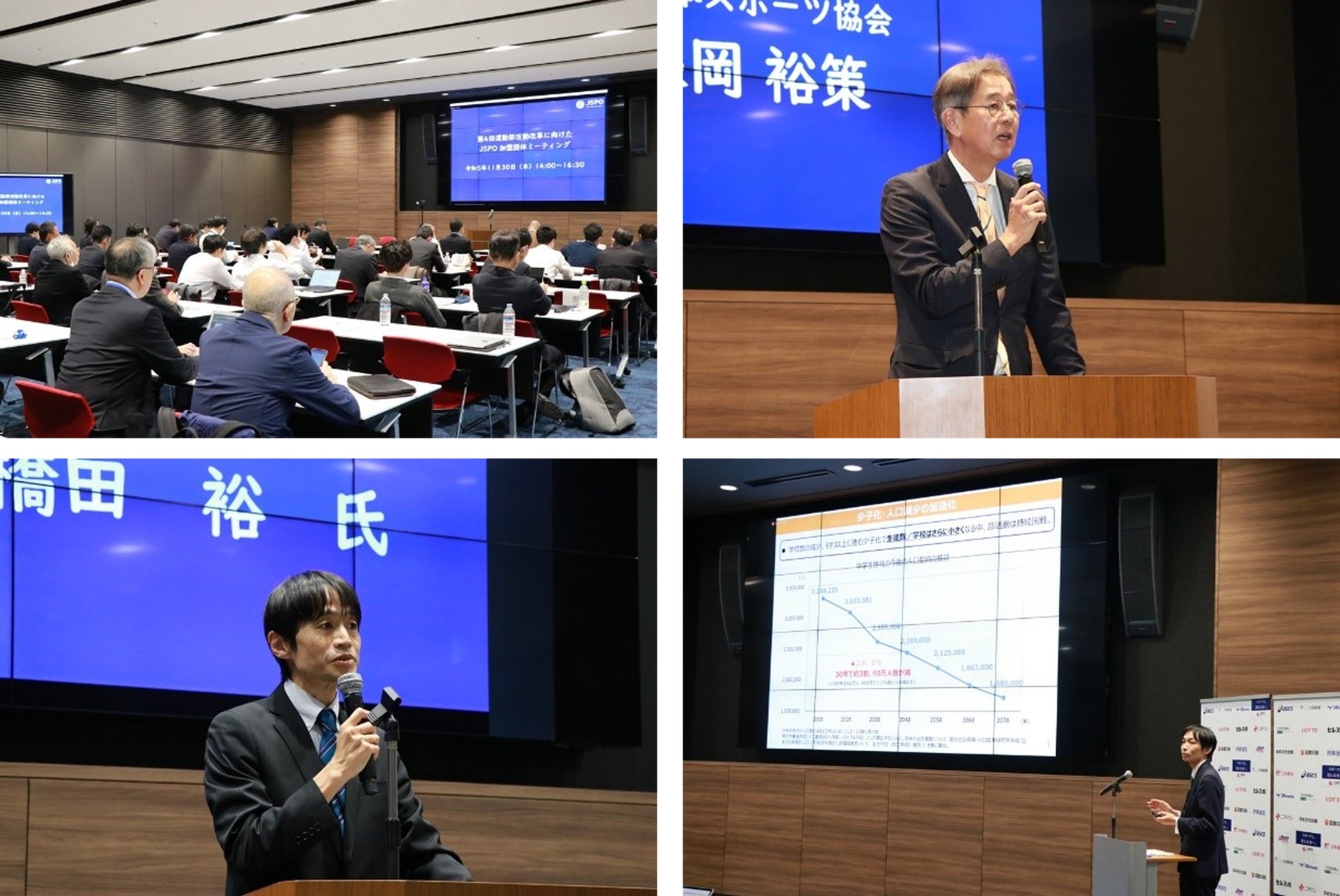 続いて、当協会加盟の4団体からは、都道府県体育・スポーツ協会、中央競技団体それぞれの立場での運動部活動改革を踏まえた取り組み事例が発表され、運動部活動改革を推進していくための情報共有を図りました。