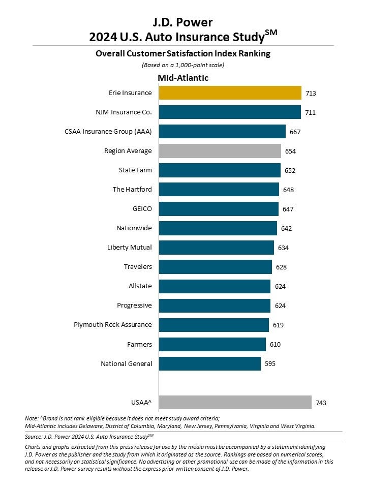 【大西洋側中部】Erie Insurance(エリー)(713ポイント、3年連続の総合満足度第1位)
