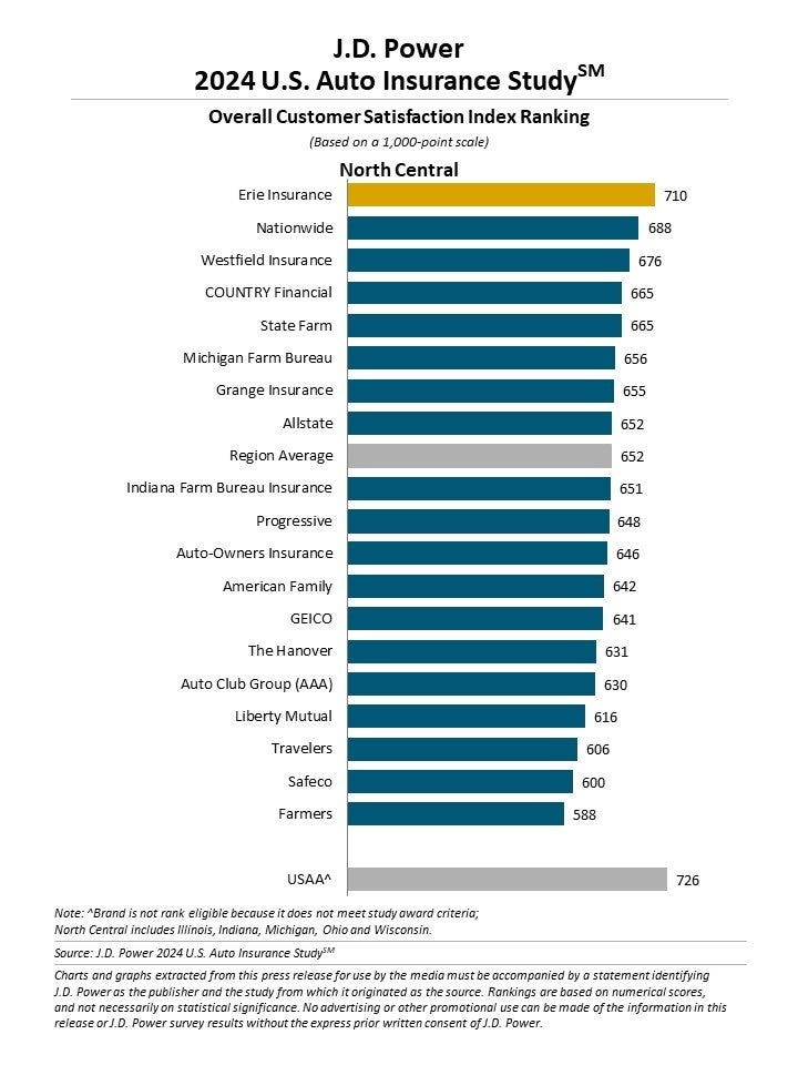 【中央北部】Erie Insurance(エリー)(710ポイント、4年連続の総合満足度第1位)