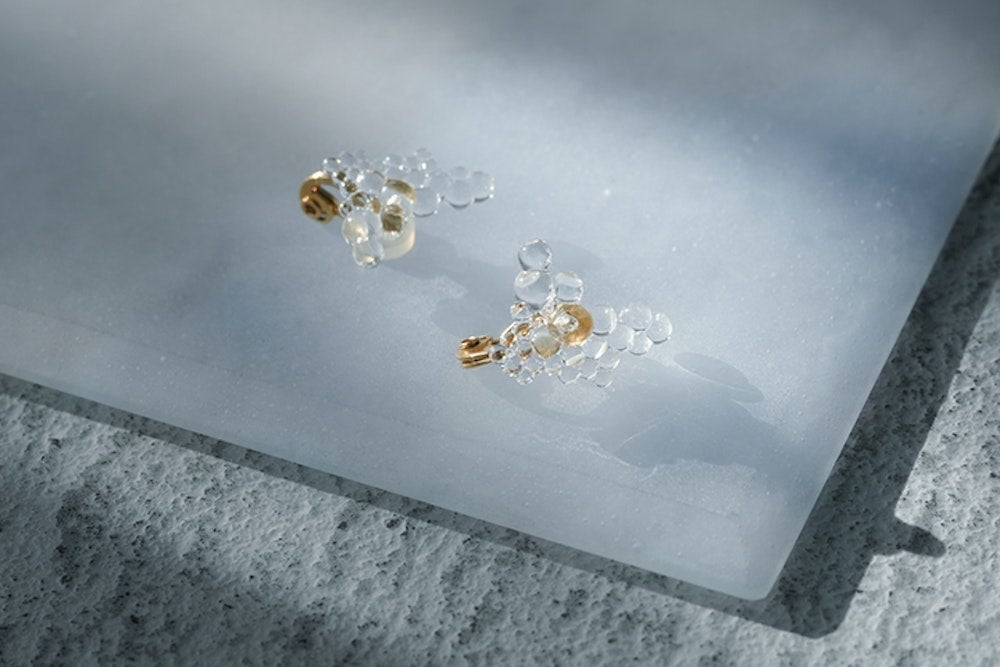 Kanocoさんが光の粒を耳元に‥‥とイメージしたかたちを、HARIOの職人がひとつひとつ手作りでつくったガラスのイヤリングです。透明なガラスはどんな色や素材の服にも自然になじみ、その色を取り込んで輝きます。映り込む風景によって変わる表情も、魅力です。