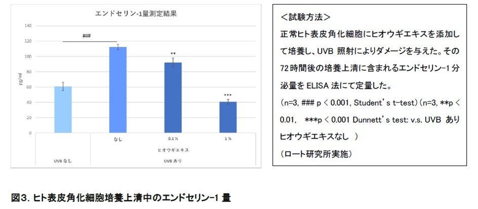 2) UVBダメージで上昇するエンドセリン-1の産生をヒオウギエキスが抑制することを確認
