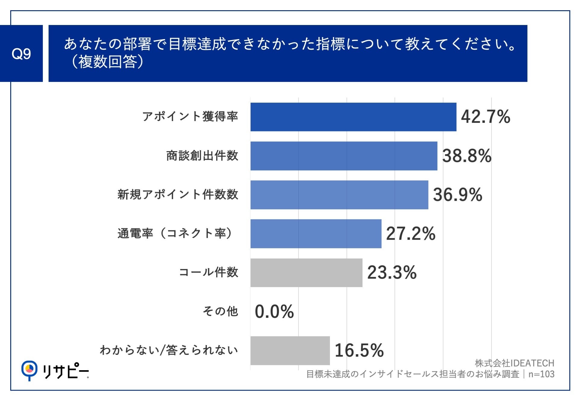 ワンストップでリサーチデータマーケティングを実現する「リサピー®️」(https://ideatech.jp/service/research-pr)を運営する株式会社IDEATECH(本社:東京都港区、代表取締役社長:石川友夫、以下:IDEATECH)は、2024年上半期の部門目標未達成のインサイドセールスの担当者103名を対象に、目標未達成のインサイドセールス担当者のお悩み調査を実施しましたので、お知らせいたします。