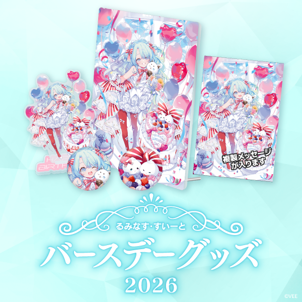 株式会社ソニー・ミュージックエンタテインメント(本社:東京都千代田区、代表取締役社長:村松 俊亮)は、バーチャルタレント育成&マネジメントプロジェクト「VEE」の公式オンラインショップ「VEE Official Shop」にて、所属バーチャルタレント「るみなす・すいーと」のバースデーグッズの受注販売を開始したことをお知らせします。