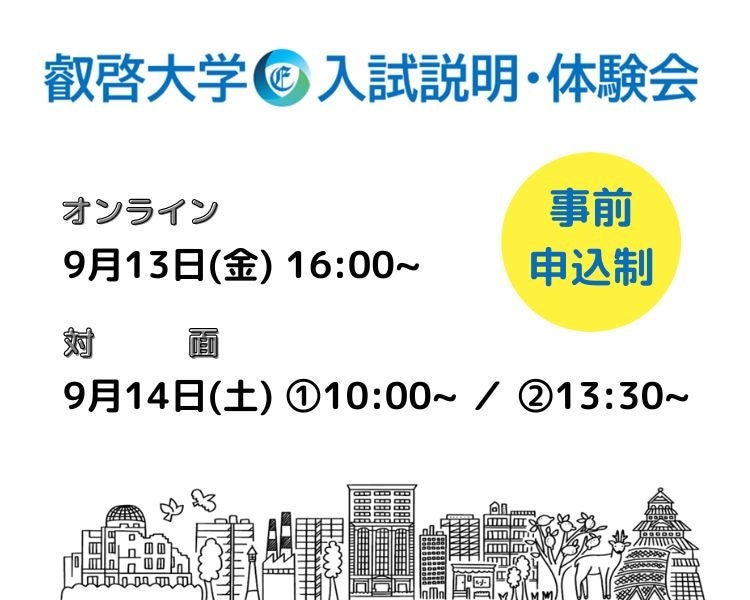 叡啓大学(学長 有信睦弘、広島市中区)は、今年度の入試の説明や、グループディスカッションを体験してもらえるイベントを、2024年9月13日(金)・14日(土)に開催します!