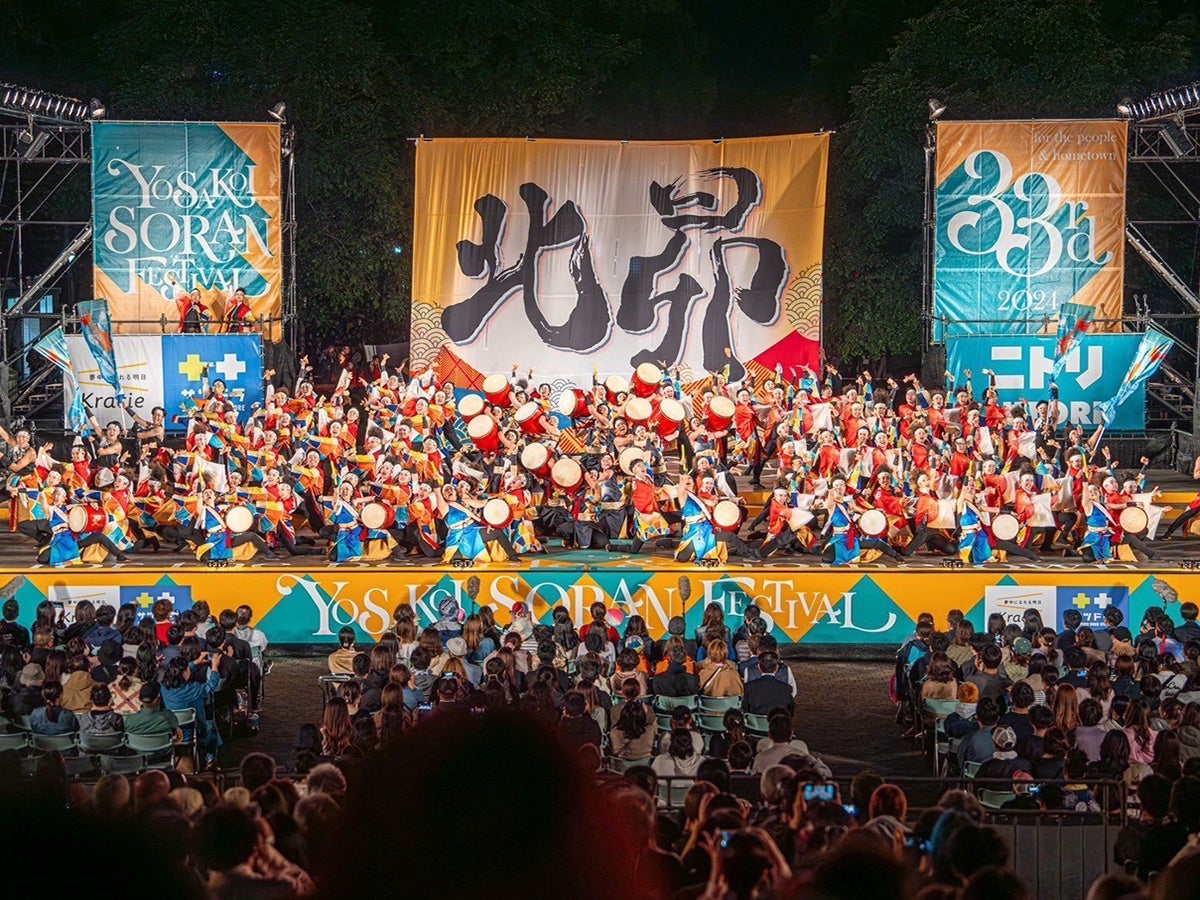 開放的な空の下、ドリンク片手に間近で演舞パフォーマンスをご覧頂けます。 EZO民舞連 桜花による「北海盆唄」のレクチャーもあり、最後は馴染みの盆踊りで会場を盛り上げます。