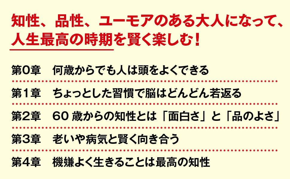 どれも日常生活のなかに手軽に取り入れられて、脳の働きを活発にし、知的で品性のあるシニアになるために効果的なものばかり! この本で脳と心のアンチエイジングを叶えることで、一生「最高の自分」を更新し続けられます。