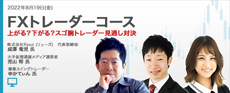 【外為どっとコム】成澤竜児氏・児山将氏・ゆかてぃん氏が解説!オンラインセミナー『FXトレーダーコース!上がる?下がる?スゴ腕トレーダー見通し対決』8/19(金)19時より開講