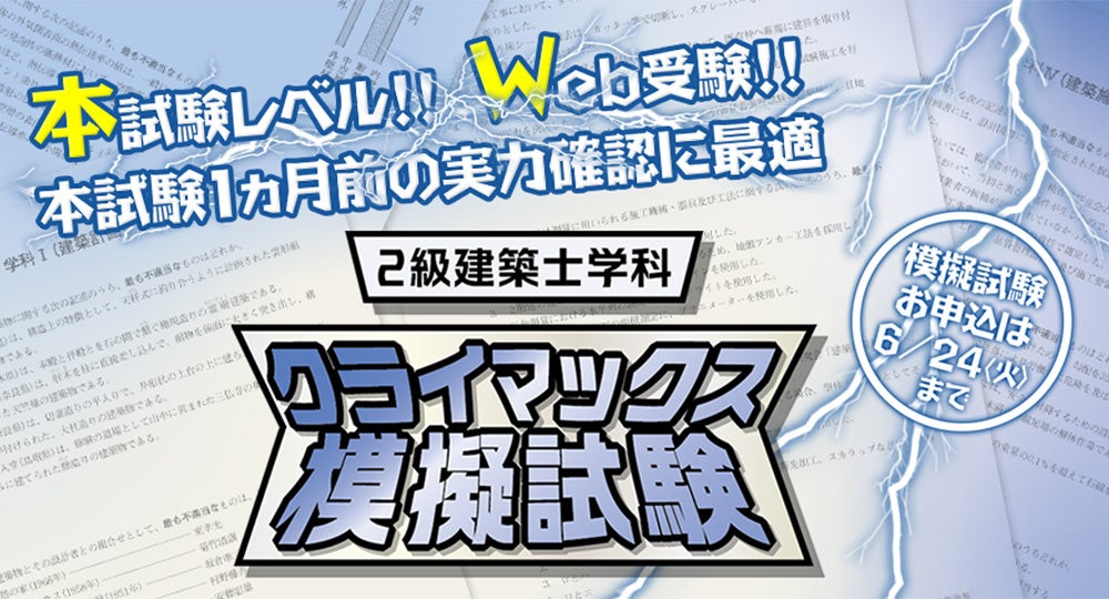 本試験レベル!本試験1ヵ月前の実力確認に最適「2級建築士学科 クライマックス模擬試験」お申込受付中!