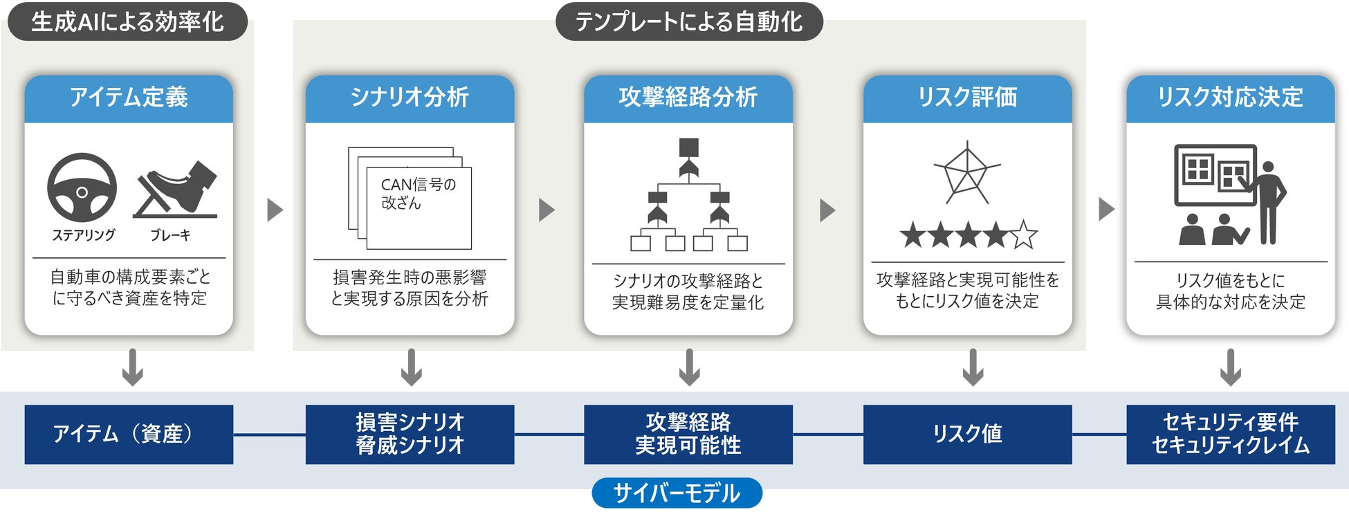 生成AIの活用とテンプレートによる自動化により、自動車の構成要素ごとの脅威分析とリスク評価(TARA)を効率化