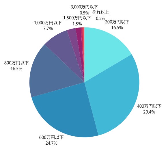 「100万円以下」が38.7%で最も多く、これに「200万円以下」が25.8%、「50万円以下」が13.9%と続いた。
