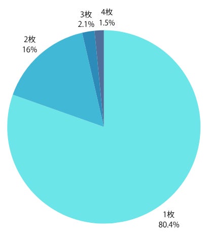 「2枚」が25.8%で最も多く、「5枚以上」「3枚」と続いた。また、複数のクレジットカードを持ち合わせている人が全体の約8割にのぼることもわかった。