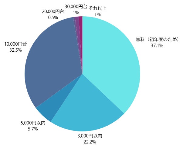 「無料(初年度のため)」が37.1%で最も多かったが、年会費が「10,000円台」という人も32.5%と2番目に多かった。また、わずかだが30,000万円台やそれ以上の年会費を支払っている人もいた。