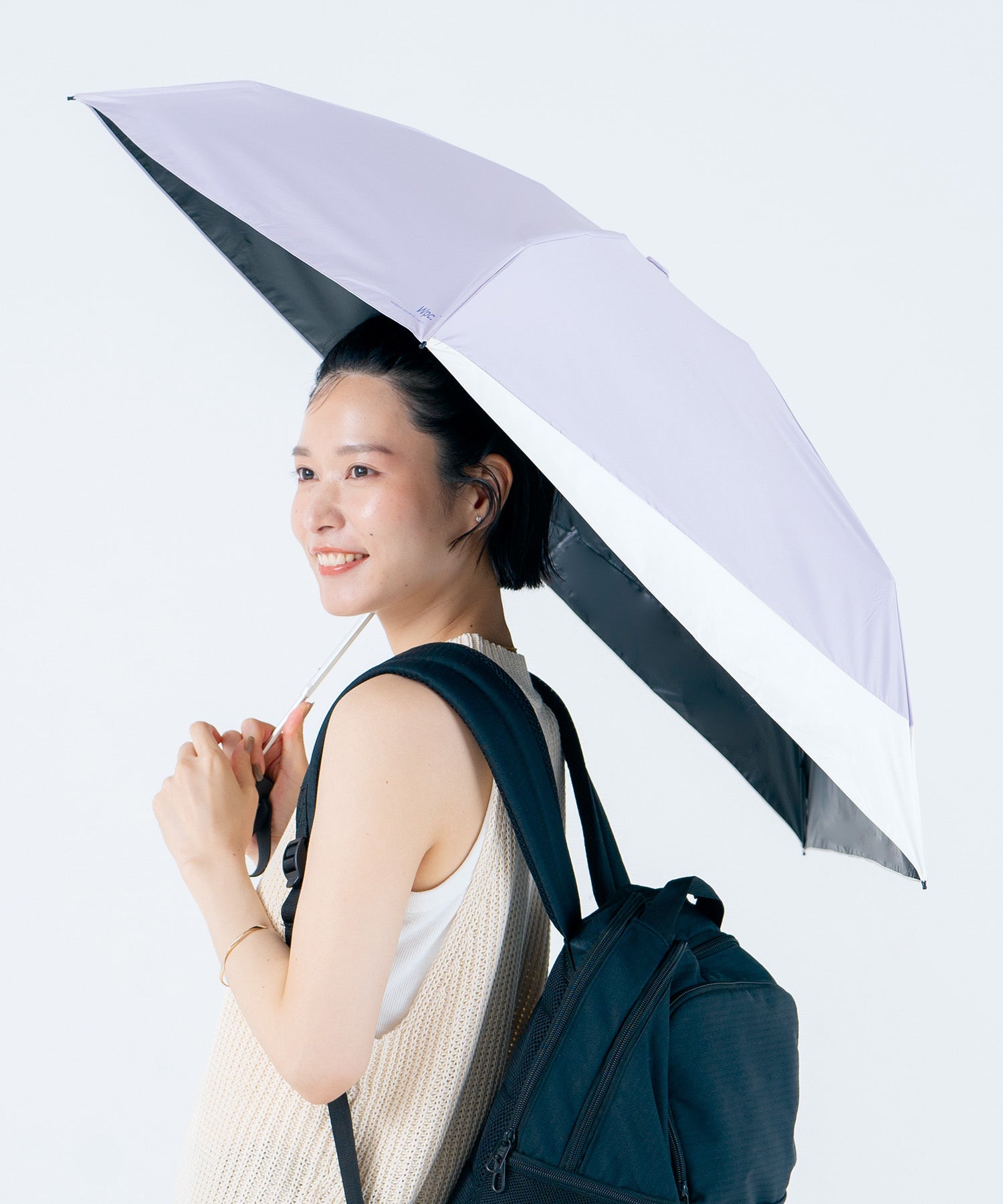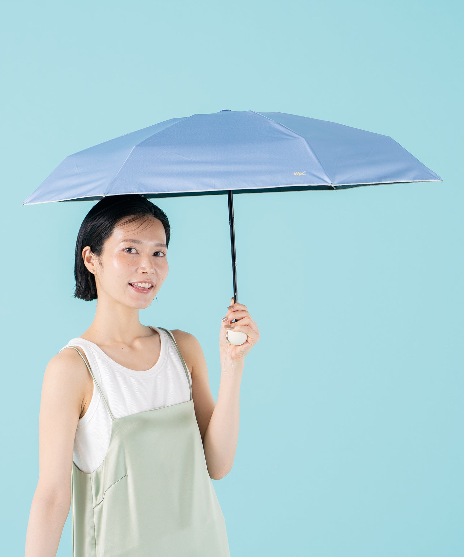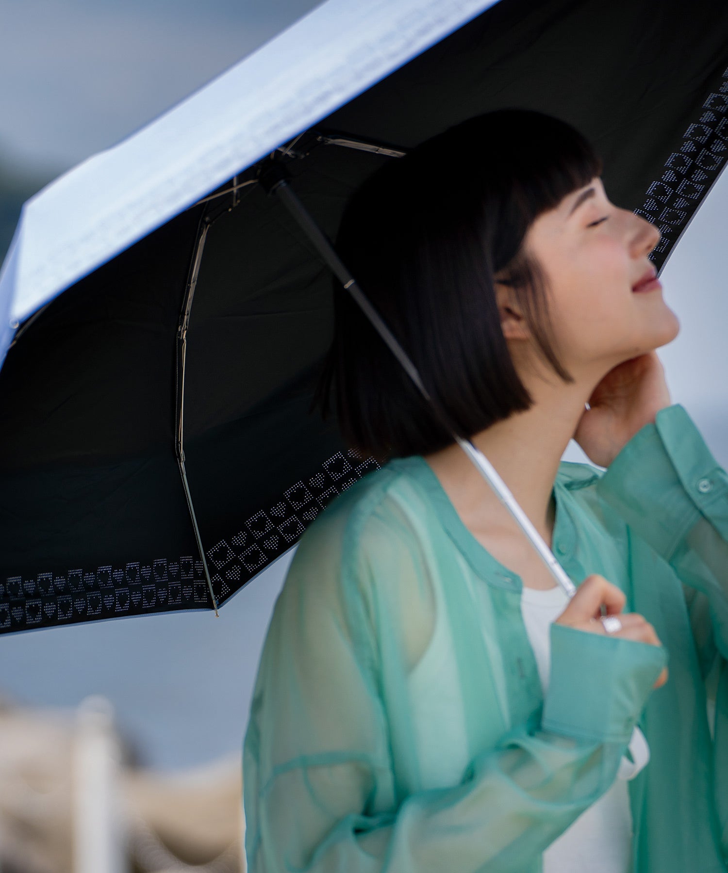 全カラーUVカット率100%・遮光率100%・UPF50+*生地を使用しているので、日差しの強い日も快適に過ごせるのがWpc.の日傘の強み。また傘の内側に施された黒色のポリウレタンコーティングが光の反射を抑え、まぶしさを軽減してくれます。さらに高い遮熱性で熱中症対策としても活躍すること間違いなし。はっ水加工も施されており、雨の日でも使用可能な晴雨兼用です。