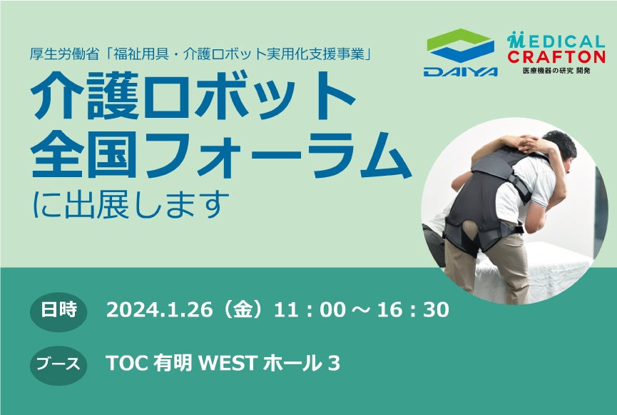 医療用品メーカーのダイヤ工業株式会社と、グループ企業である、医療研究・開発・販売のメディカルクラフトン株式会社は、2024年1月26日(金)にTOC有明にて開催される「介護ロボット全国フォーラム」に出展いたします。
