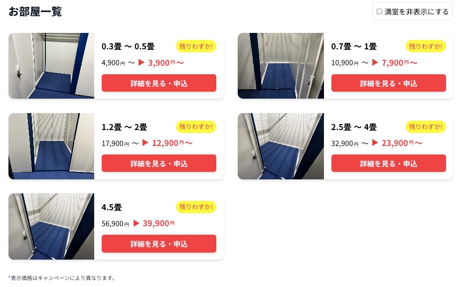 荷物以上に大きな部屋を借りてしまうことや、狭すぎて荷物が入らなかったなんていうトラブルを回避できます。