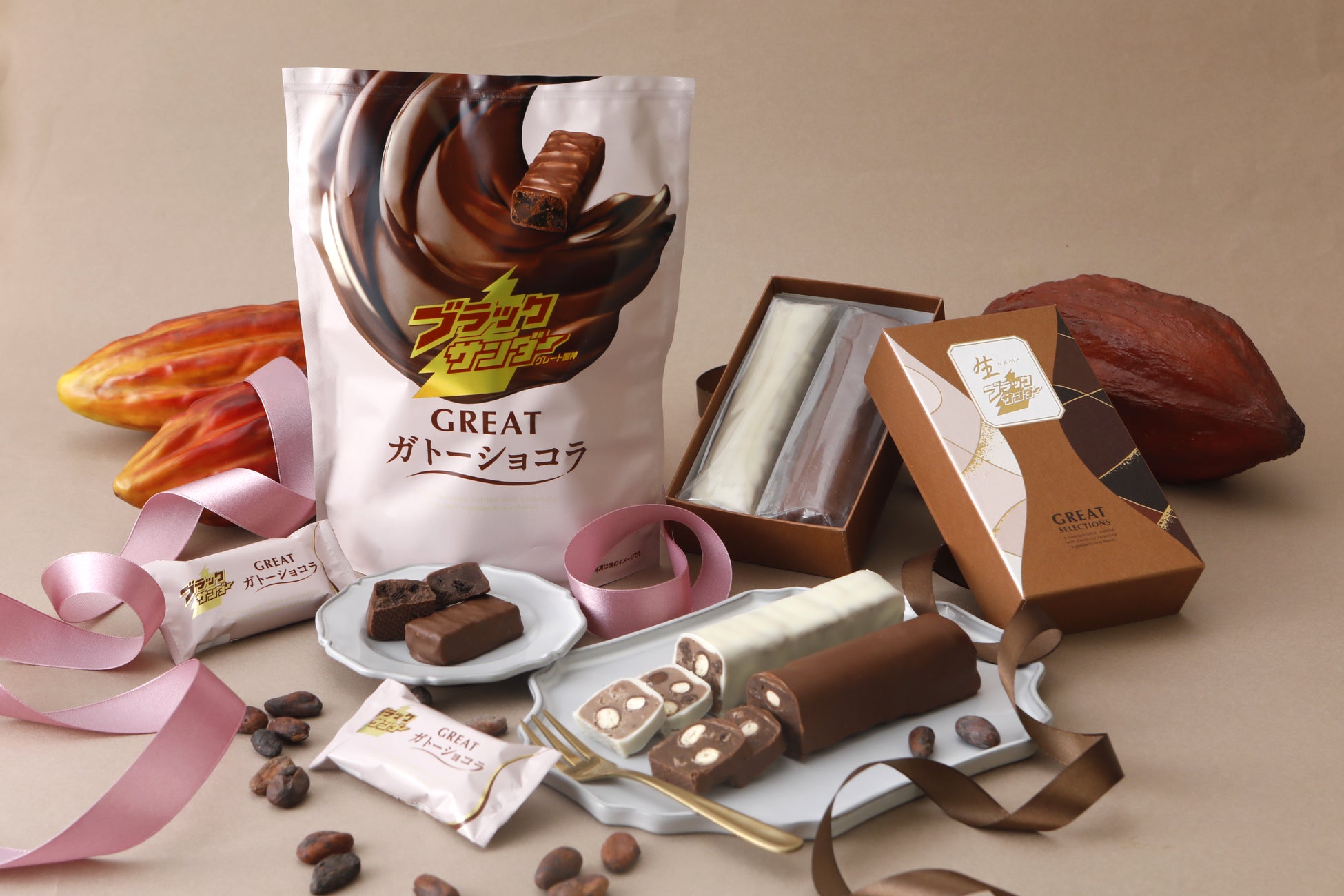 生チョコが特徴の「生ブラックサンダー GREAT SELECTIONS」とちょっとリッチな「ブラックサンダーGREATガトーショコラ」が2026年1月15日(木)より新発売!