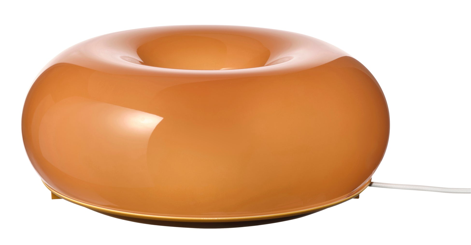 ニュージーランド育ちでオランダに拠点をおくデザイナーSabine Marcelisとのコラボレーション。光がランプのオレンジのガラスを通り抜けるとき、ドーナツのようなやさしい形があたたかく輝きます。ライトを付けていない時も、フォルムがかわいらしくオブジェとしても使えます。テーブルランプにもウォールランプにもなる二刀流ランプです。イケア店舗でもすぐに売り切れる人気の商品です。